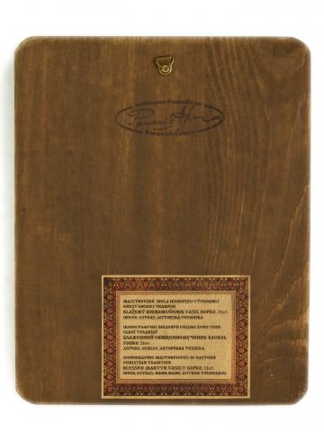 Ikona je vyrobená v dielni Romaniv art autorskou technikou – levkas na masívnom dreve. S háčikom na zavesenie.