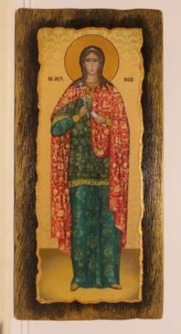 Meninová ikona svätca - nebeského patróna. Veľký výber mien svätcov. Reprodukcie ikon sú štylizované, ručne dotvorené s čiastočným využitím akrylových farieb, akrylového gélu a maliarskeho laku. Drevený podklad je tónovaný a lakovaný, vyrobený z materiálu odolnému voči vlhkosti.