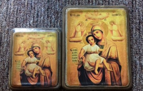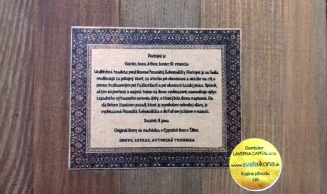 Ikona je vyrobená v dielni Romaniv art autorskou technikou – levkas na masívnom dreve. S háčikom na zavesenie.